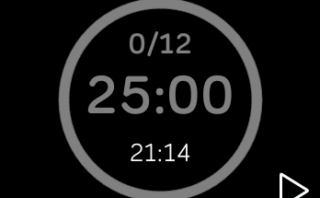 画面左下のアイコンをタップすると、次のセッションへ早送りすることもできます。25分の作業時間終了はまだ来てないけど、作業(勉強)が一段落したから、すこし早めに休憩したいというときにスキップできます。